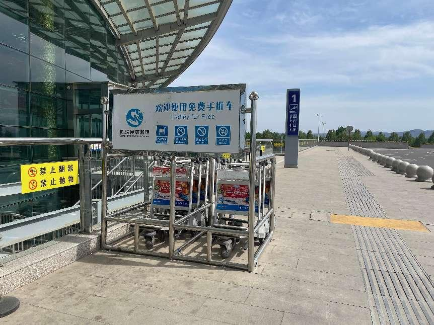 航站樓一層到達行李提取、二層出發大廳外及值機柜臺前均設有行李手推車供旅客免費使用。